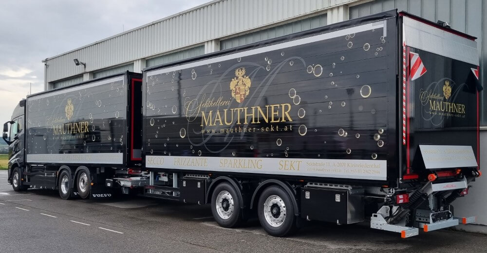 Wingliner für Getränketransport mit Beschriftung