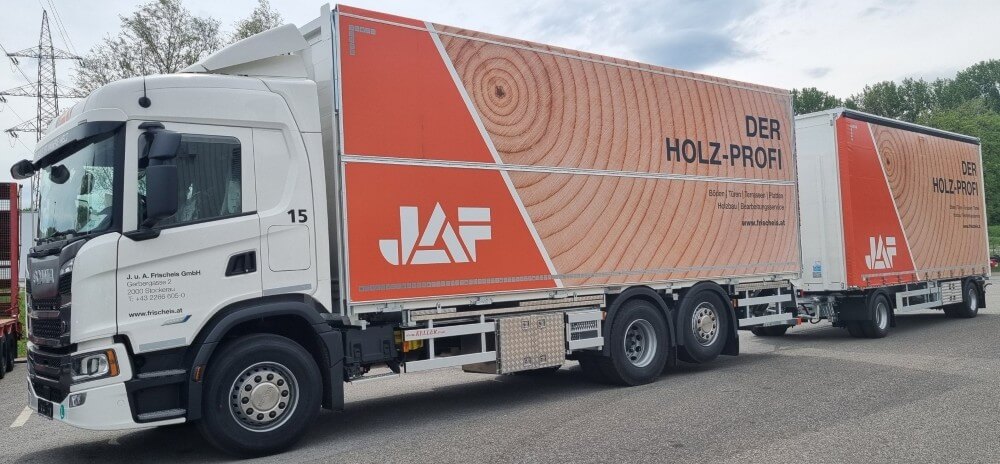 Wingliner mit Anhänger für Holztransport – geschlossen